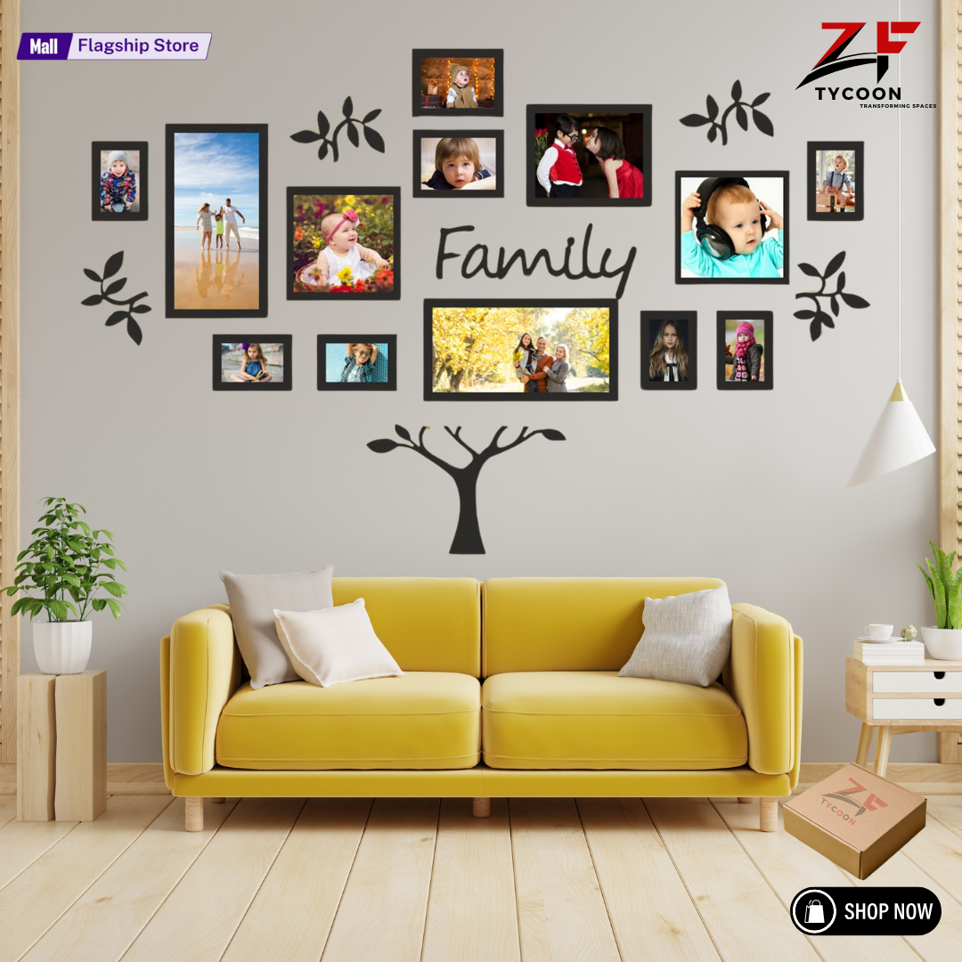 ZF 3D Wooden Wall Family Tree With Picture Large Size 10-12 Frames, Wooden Family Tree Photos Frame, Modern Ghar Ka decor