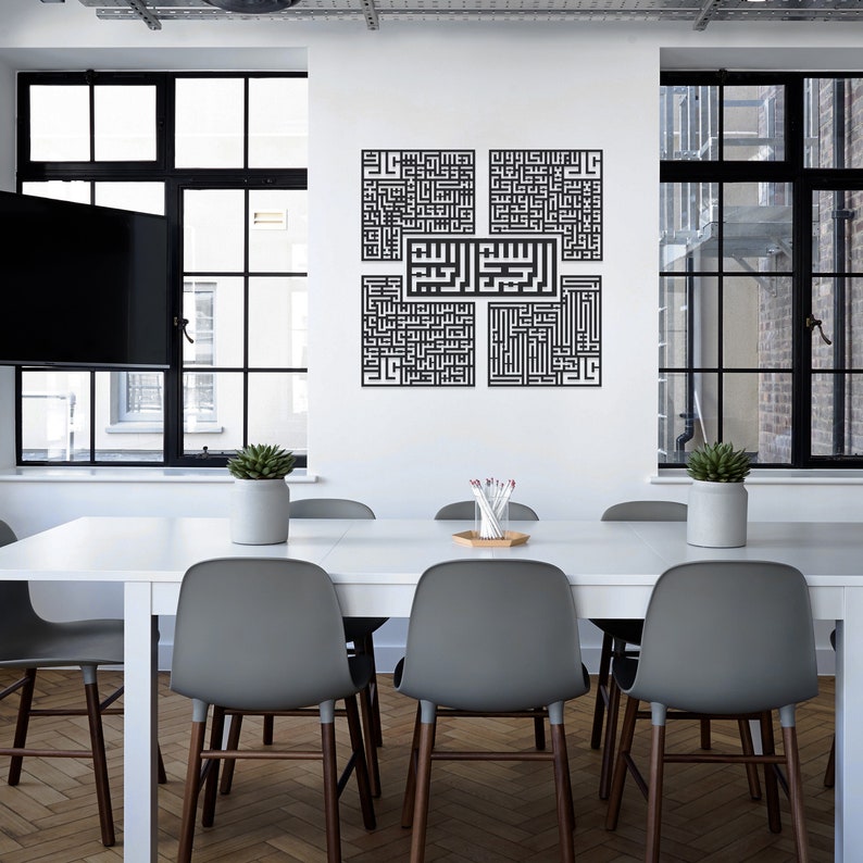 ISLAMIC METAL WALL DECOR: We design the Kufic 4 Quls written metal wall art for home and office as a Wall Art Islamic. These metal decor will add color to your room, office, living room, kitchen, kids bedroom , farmhouse, garden, cabin, prayer room and your other living spaces. This decor sholud hang on all homes.