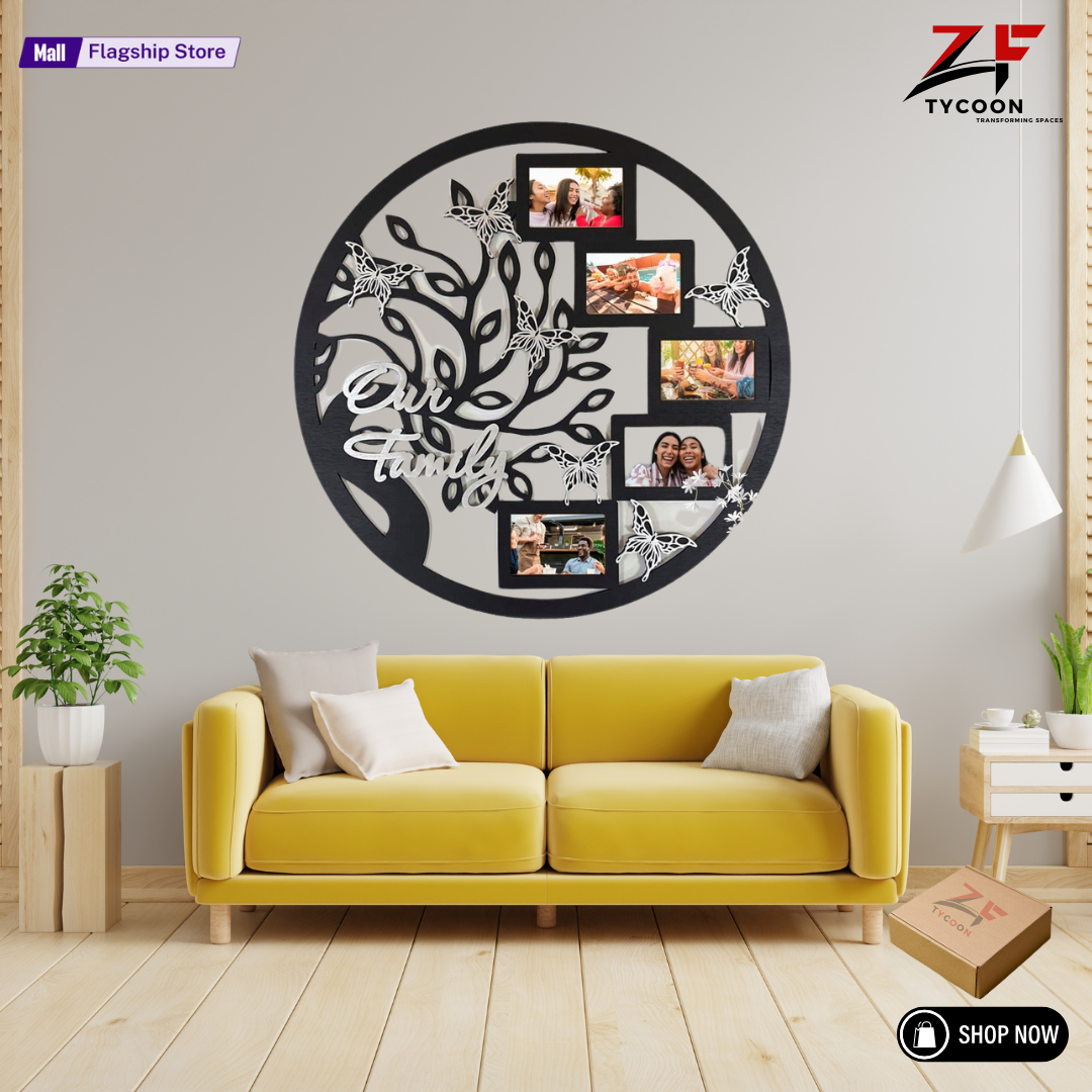 ZF photo frame, Life Wall Art, 16X16 Round Frame Collage for Family, Family Wood Tree With Photo Frame in Circle, Wall decor Frame