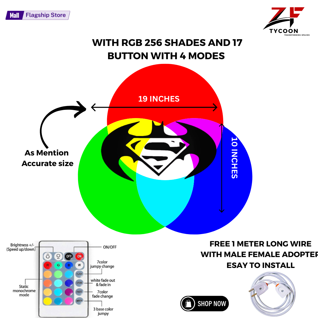 ZF Wooden SuperMan & Batman Combo LED Wall Lamp, Comic Lover, Bat Cave, Night Lamp, for Gift, Kids Room, Gaming Setup, Gaming Room, Man Cave,Led Lamp,Trendy Decore